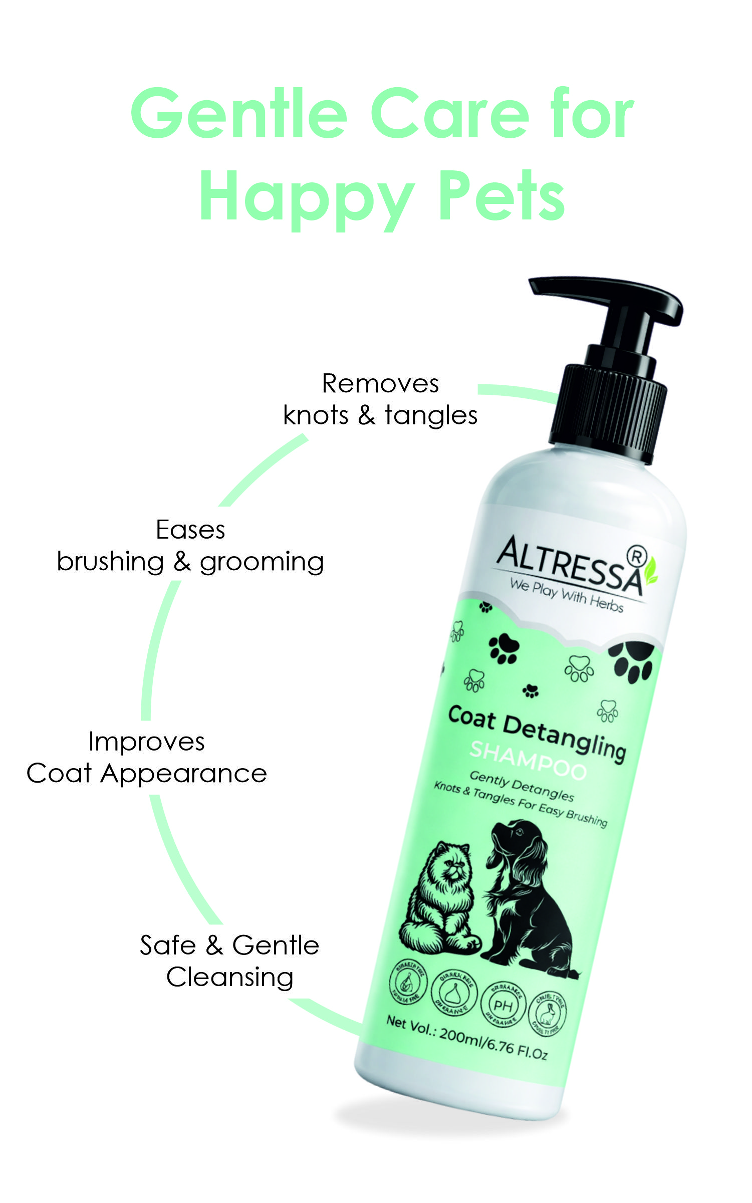 Conditioning ingredients promote easy comb‑throughs, reducing grooming time and discomfort.