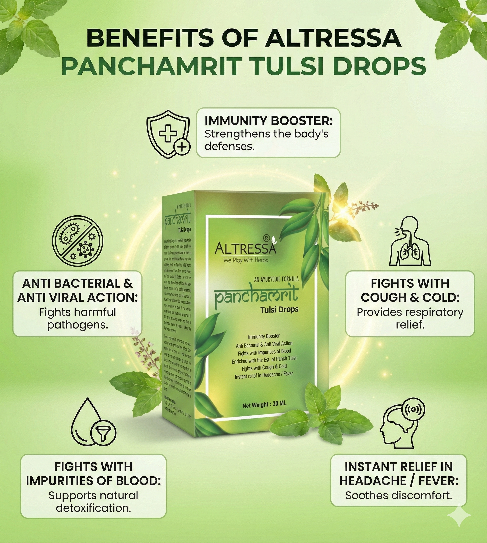 These herbal tulsi drops are marketed for general wellness benefits, such as: