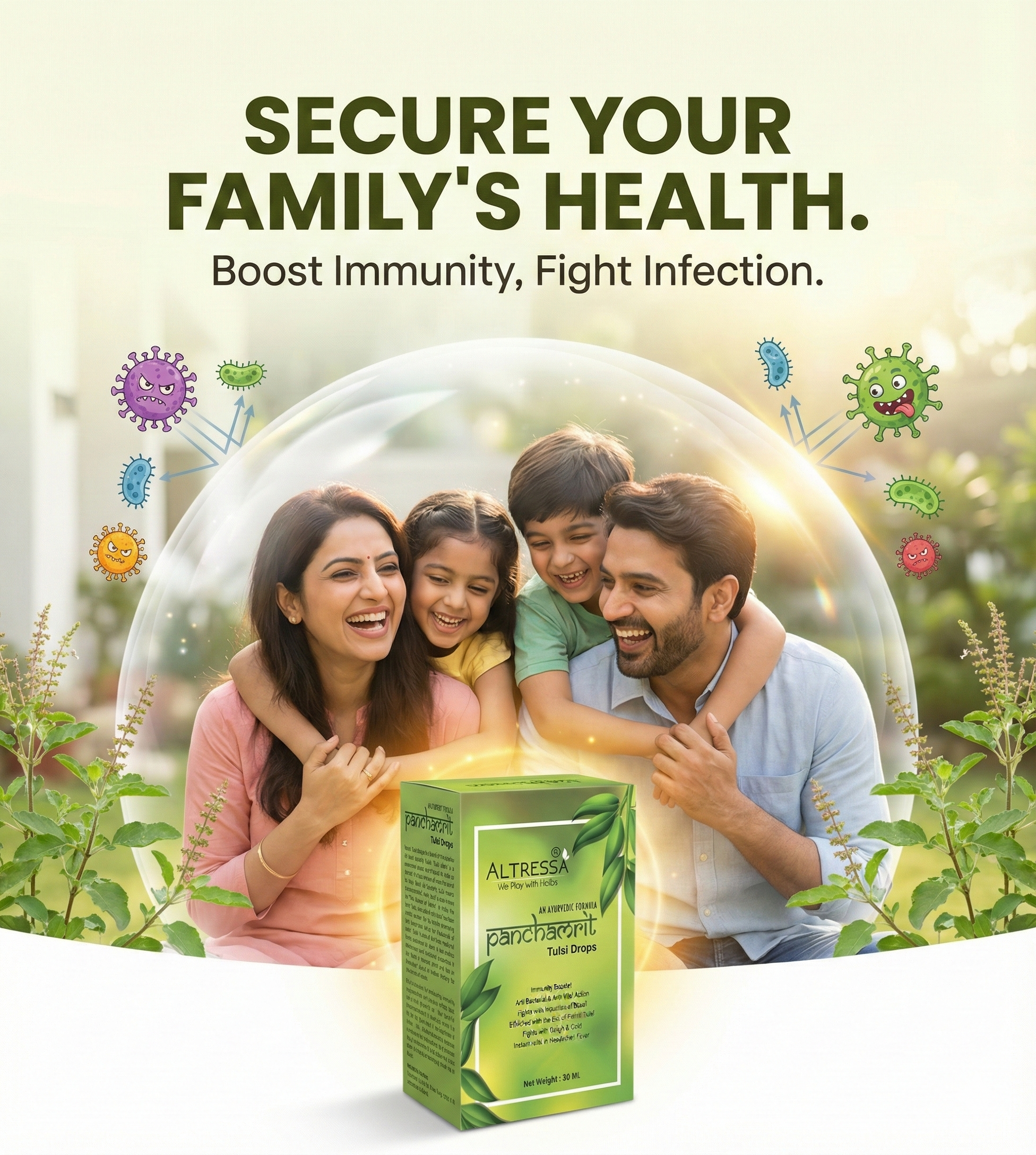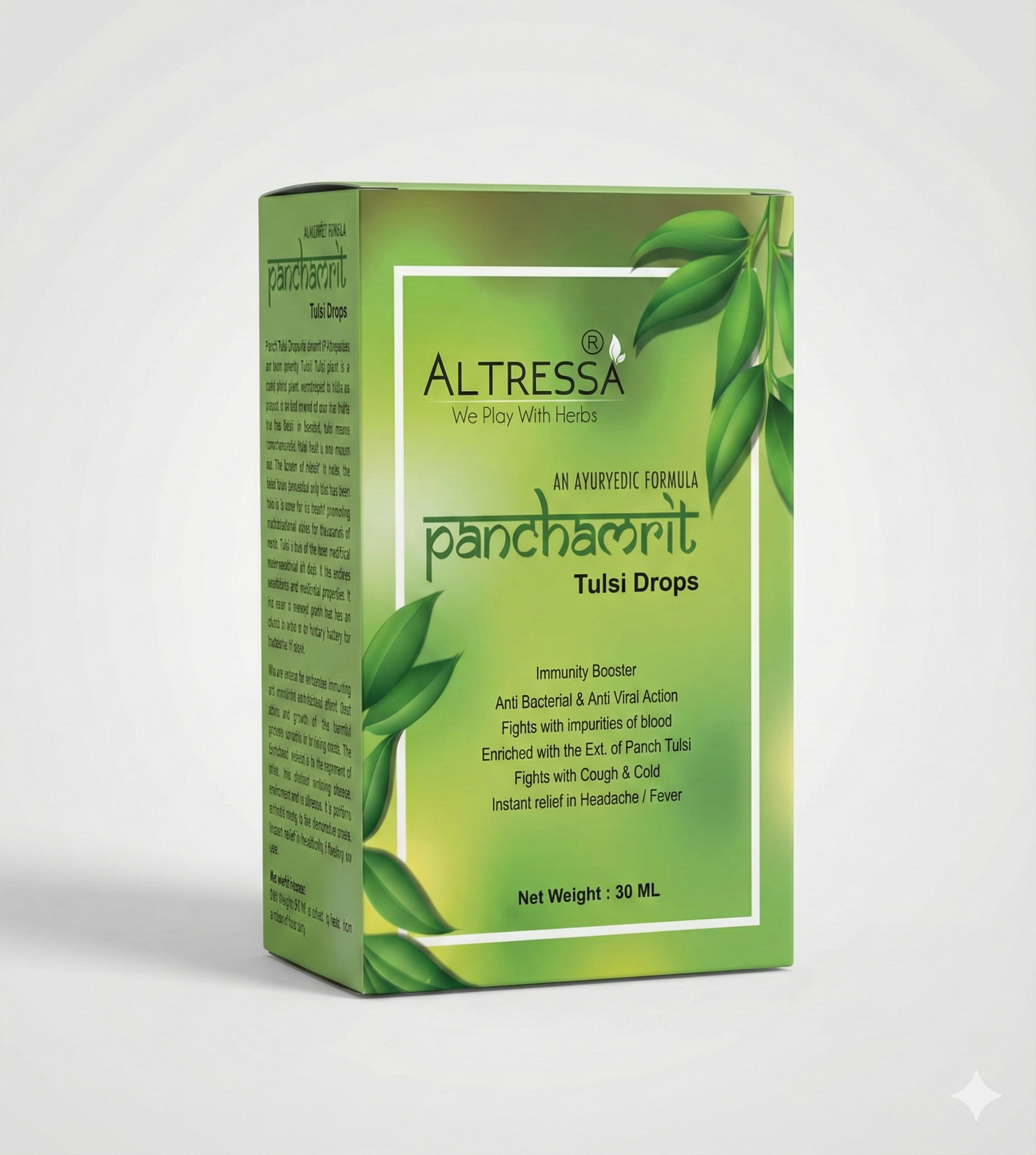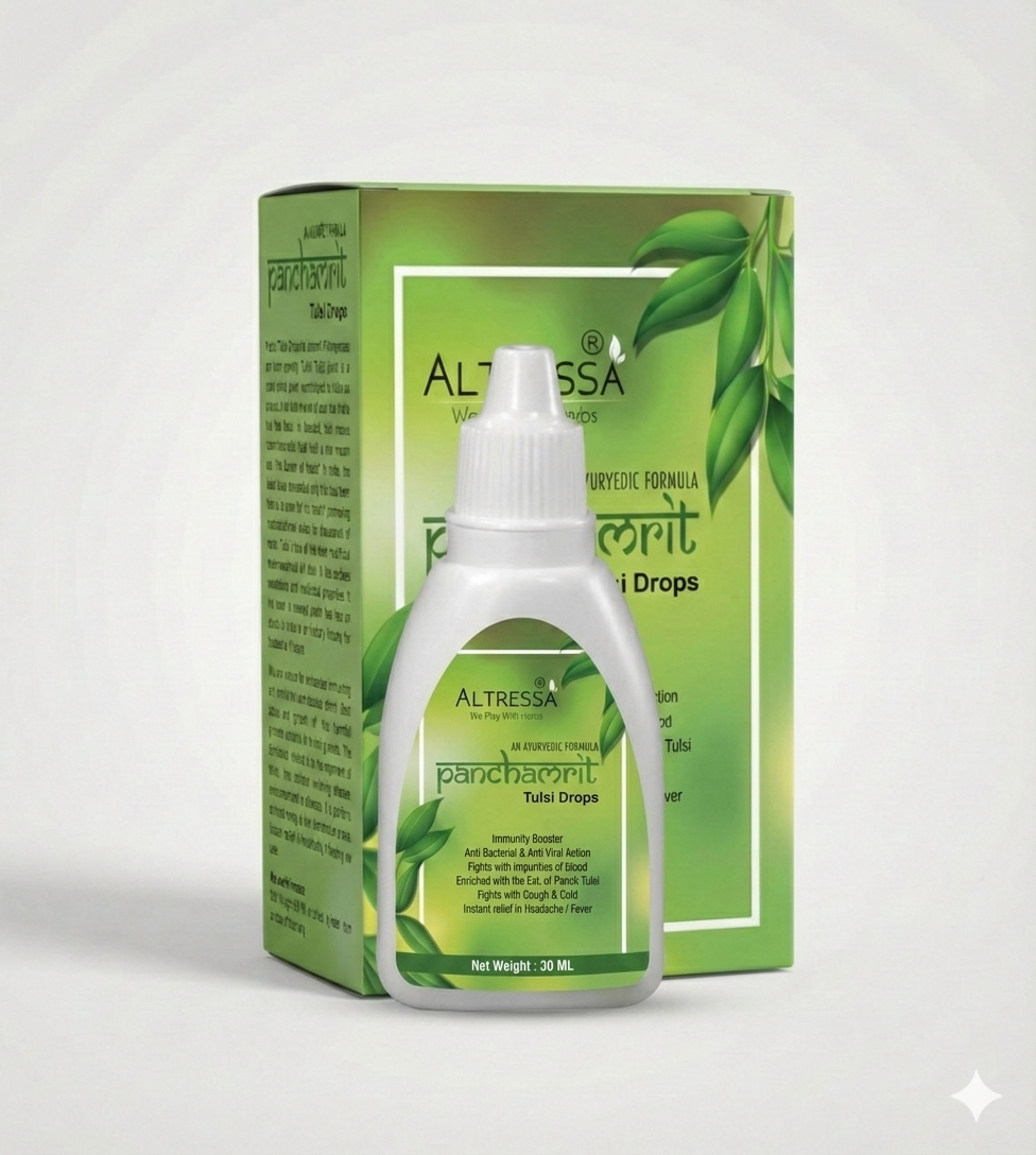 While specific brands vary, the typical botanical components in Panchamrit/Tulsi Drops include extracts or oils from various tulsi species like: