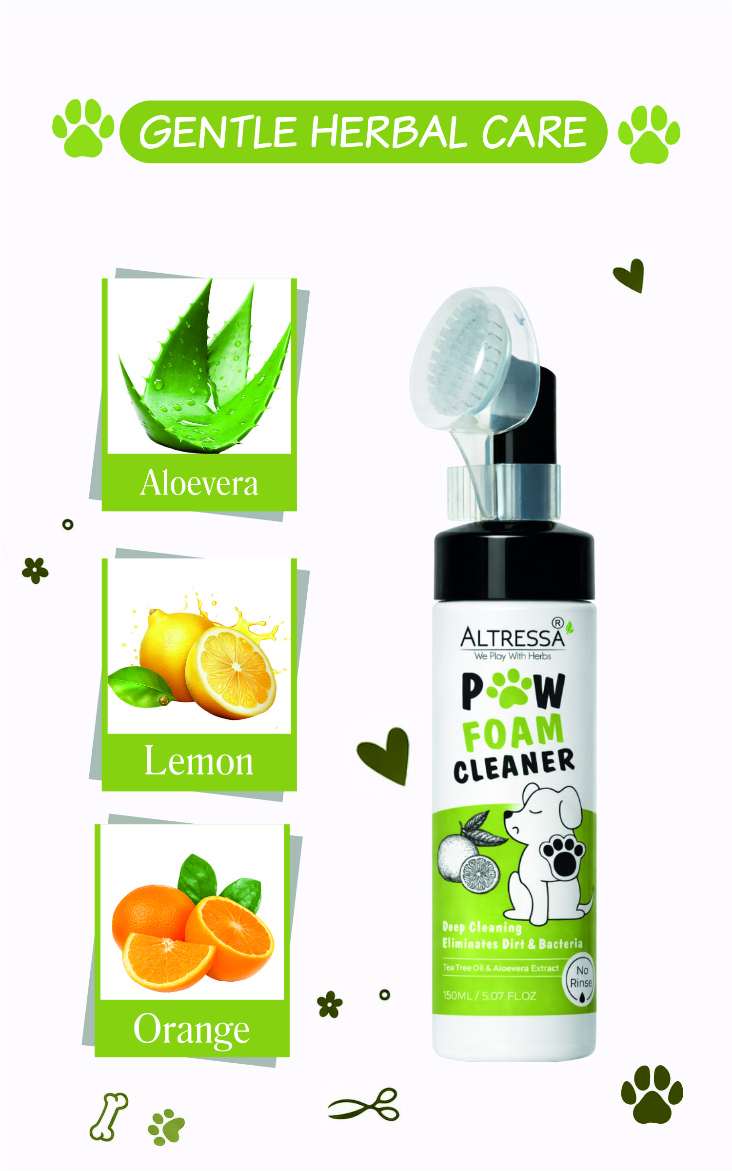 • Lemon and orange extracts help cleanse effectively, leaving paws with a pleasant, zesty fragrance.